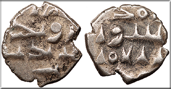 Arabic legend; caliph's name or title off flan.