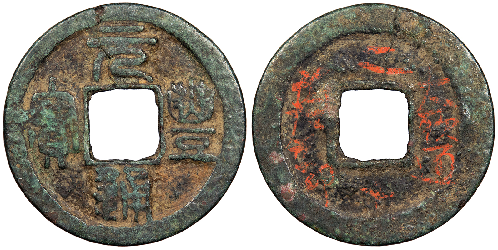 Hartill 16.210; Schjöth 545 VF. Green patina with tan fill. Flan crack. Red handwriting on reverse. Minor roughness. Seal script.