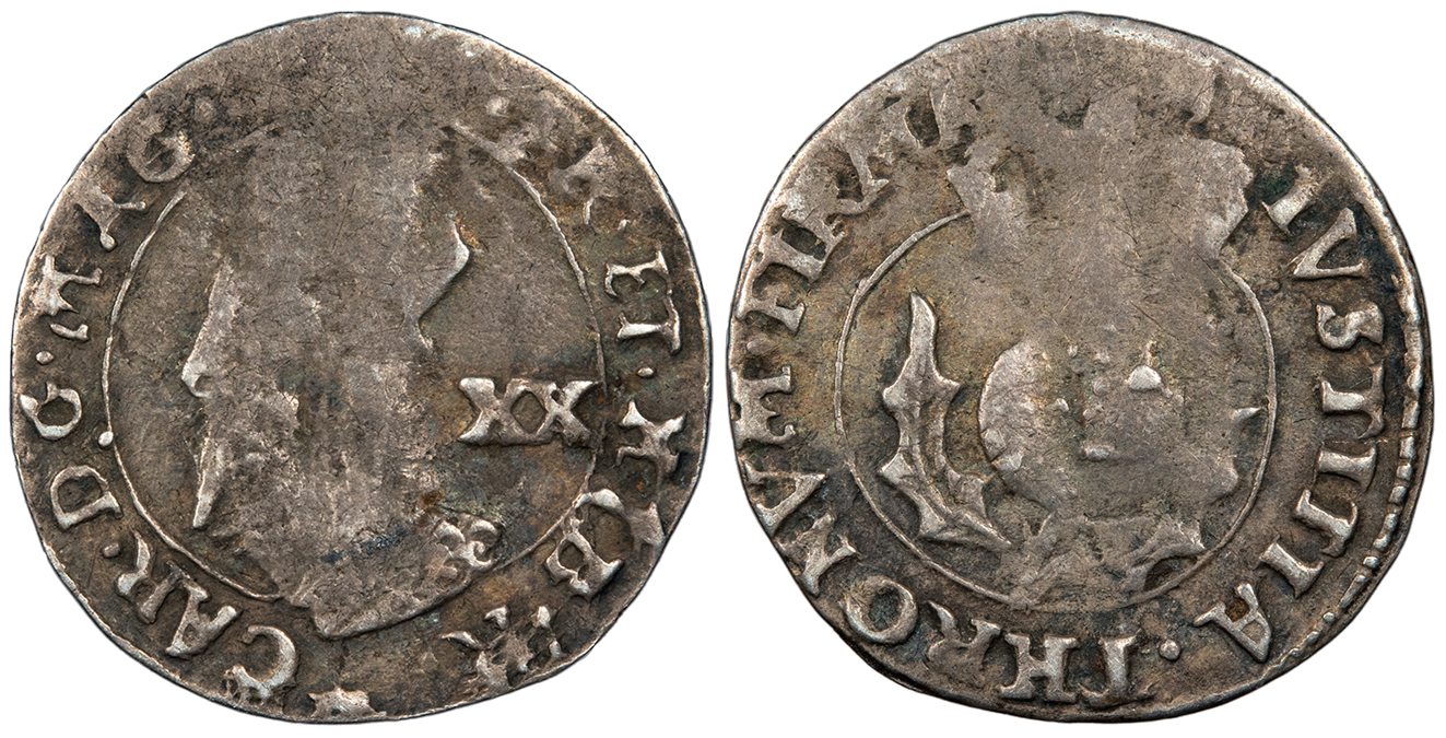 SCOTLAND Charles I 1625-1649 Falconer's anonymous issue: 1637-1642 20 Pence Fine -- #ME101311