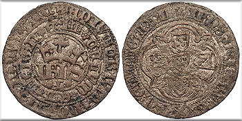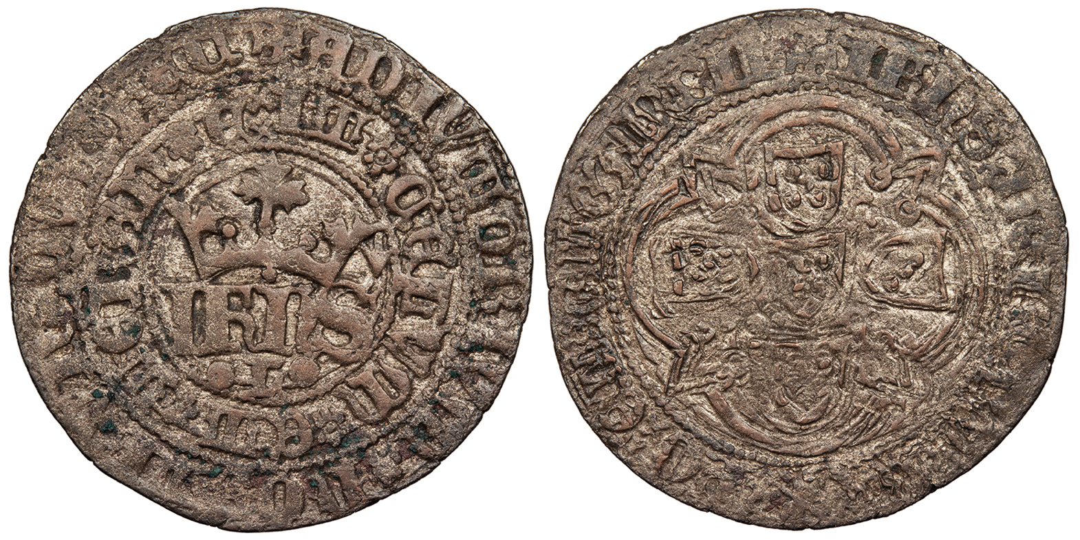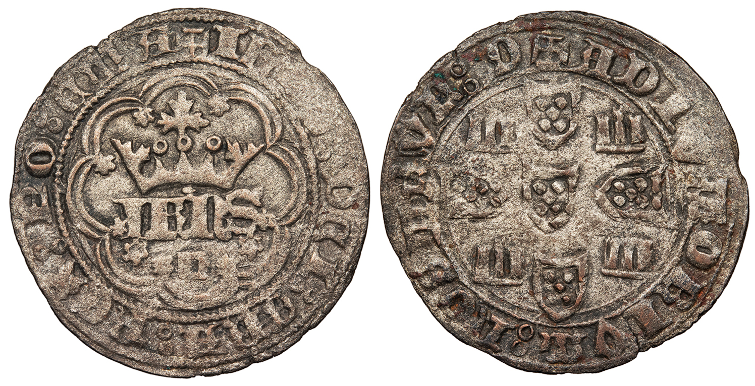 Bi Real de Tres e Meia Libras 26mm. 2.47g. Lisboa Mint. 1398-1408 Crown over IHNS, within octilobe; *L* at bottom.