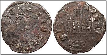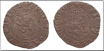 SPAIN Castille & Leon Enrique III el Doliente (Henry, the sick) 1390-1406 Blanca (2 Cornados) VF -- #ME28078