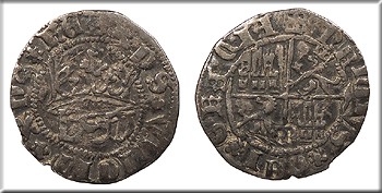 SPAIN Castille & Leon Enrique IV 1454-1474 'Medio Real de Anagrama' 1/2 Real Near VF -- #ME63982