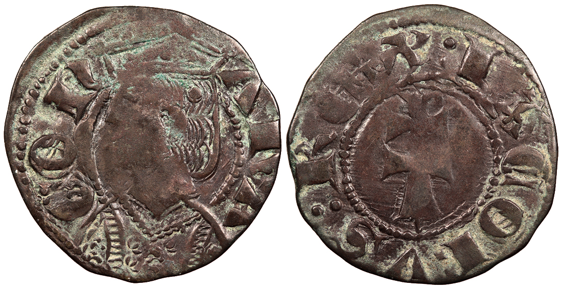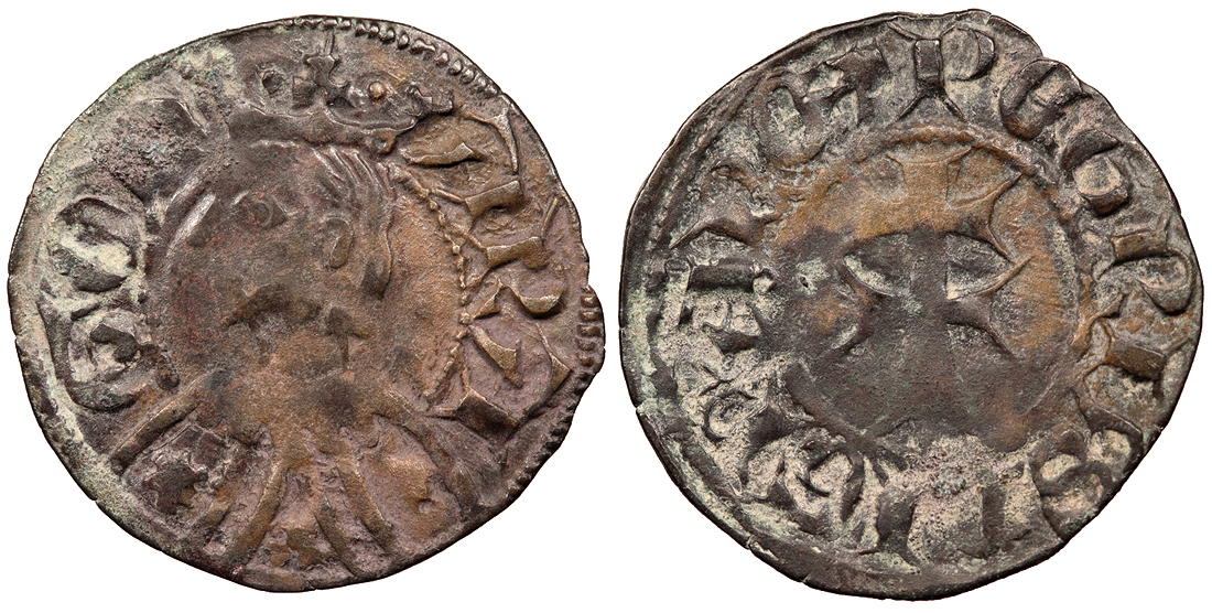 PORTUGAL Fernando I, the handsome 1367-1383 1371-1383 Pilarte Coroado (7 Dinheiros) Fine -- #ME103348