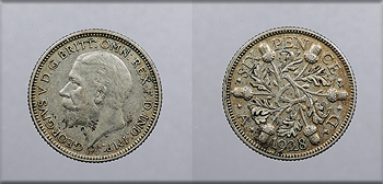 GREAT BRITAIN 1926 George V Threepence (3 Pence) -- #:WC95859