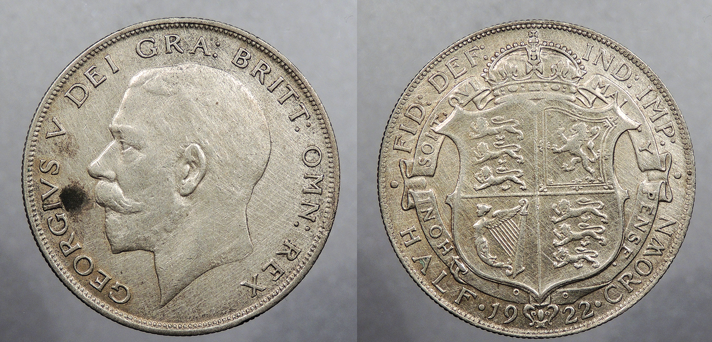 GREAT BRITAIN 1922 George V Halfcrown (1/2 Crown) -- #:WC106117