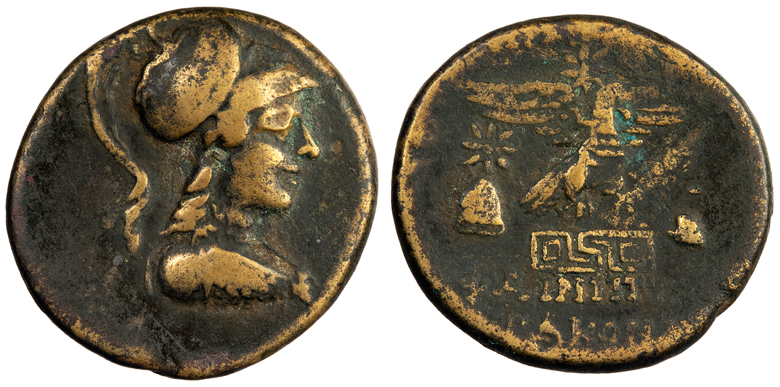 AE25 25mm. 8.64g. Bust of Athena in Corinthian helmet r., wearing aegis.
