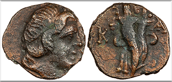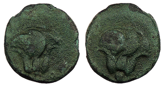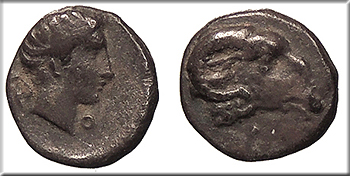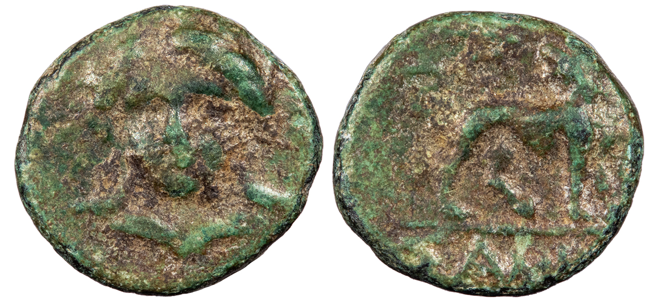 AE17 17mm. 3.00g. Head of Herakles, r. wearing lion skin headdress.