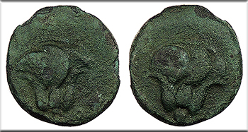 AR Tetrobol 19mm. 2.80g. Facing lion's scalp.