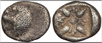 Caria Mylasa ca. 420-390 B.C. Tetartemorion Fine -- #AC99297