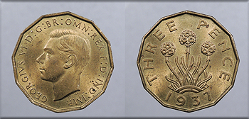 GREAT BRITAIN 1937 George VI Threepence (3 Pence) -- #:WC103146