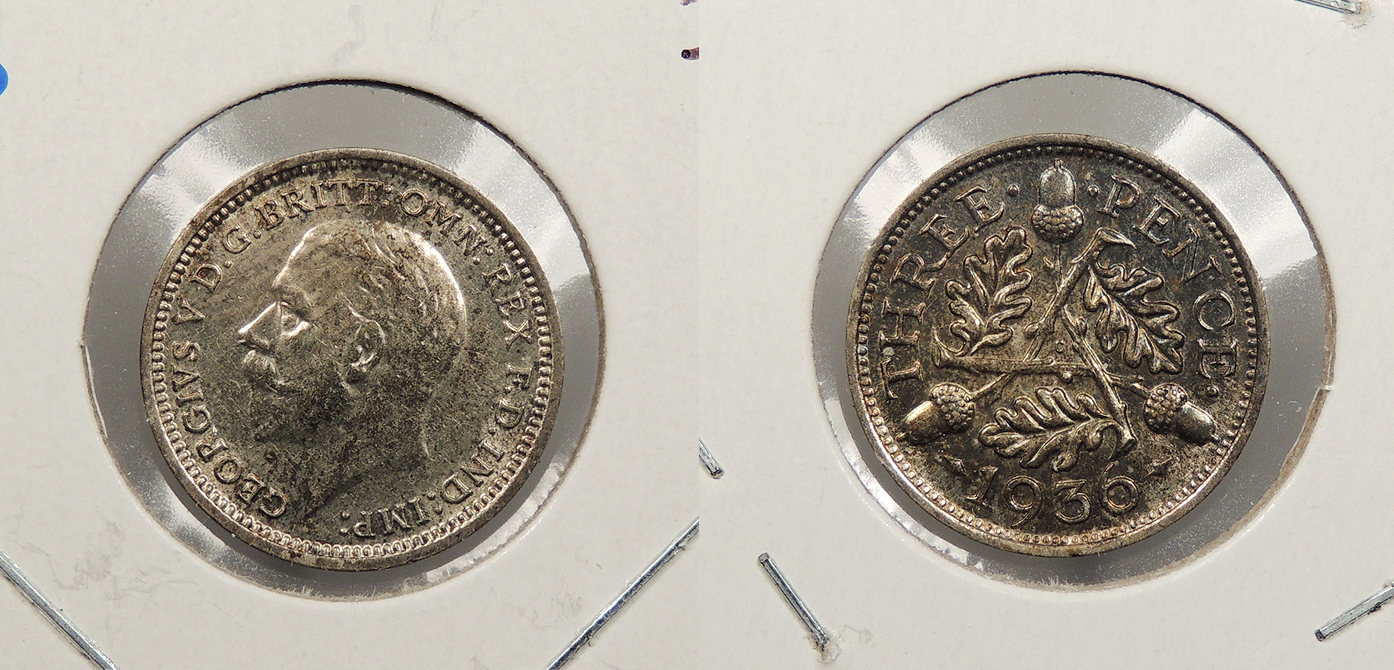 GREAT BRITAIN 1936 George V Threepence (3 Pence) -- #:WC95860