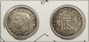 GREAT BRITAIN 1941 George VI Sixpence (6 pence) -- #:WC95867
