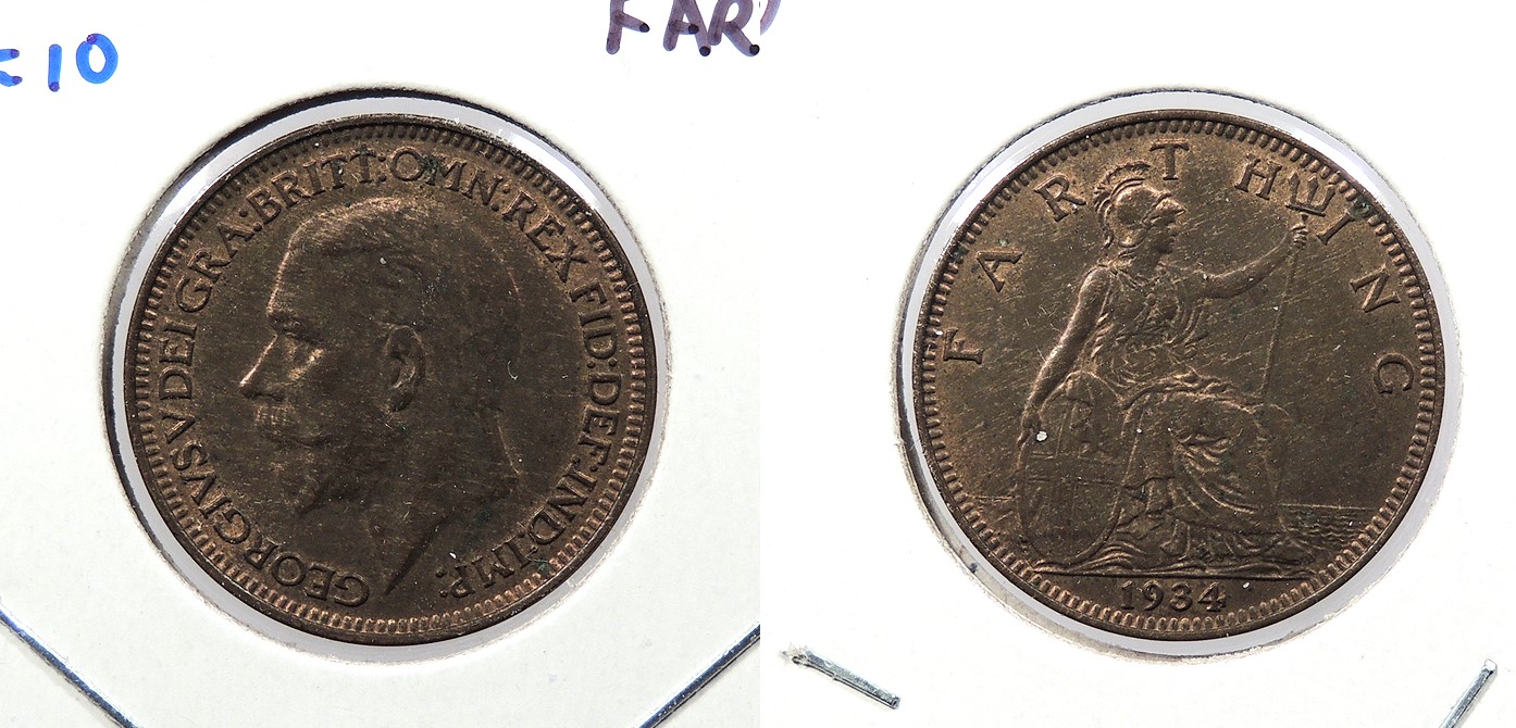 GREAT BRITAIN 1934 George V Farthing -- #:WC98384