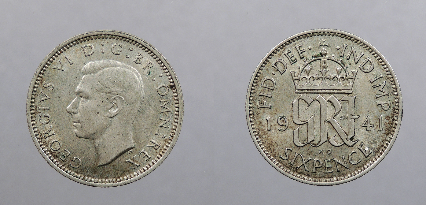 GREAT BRITAIN 1941 George VI Sixpence (6 pence) -- #:WC104393