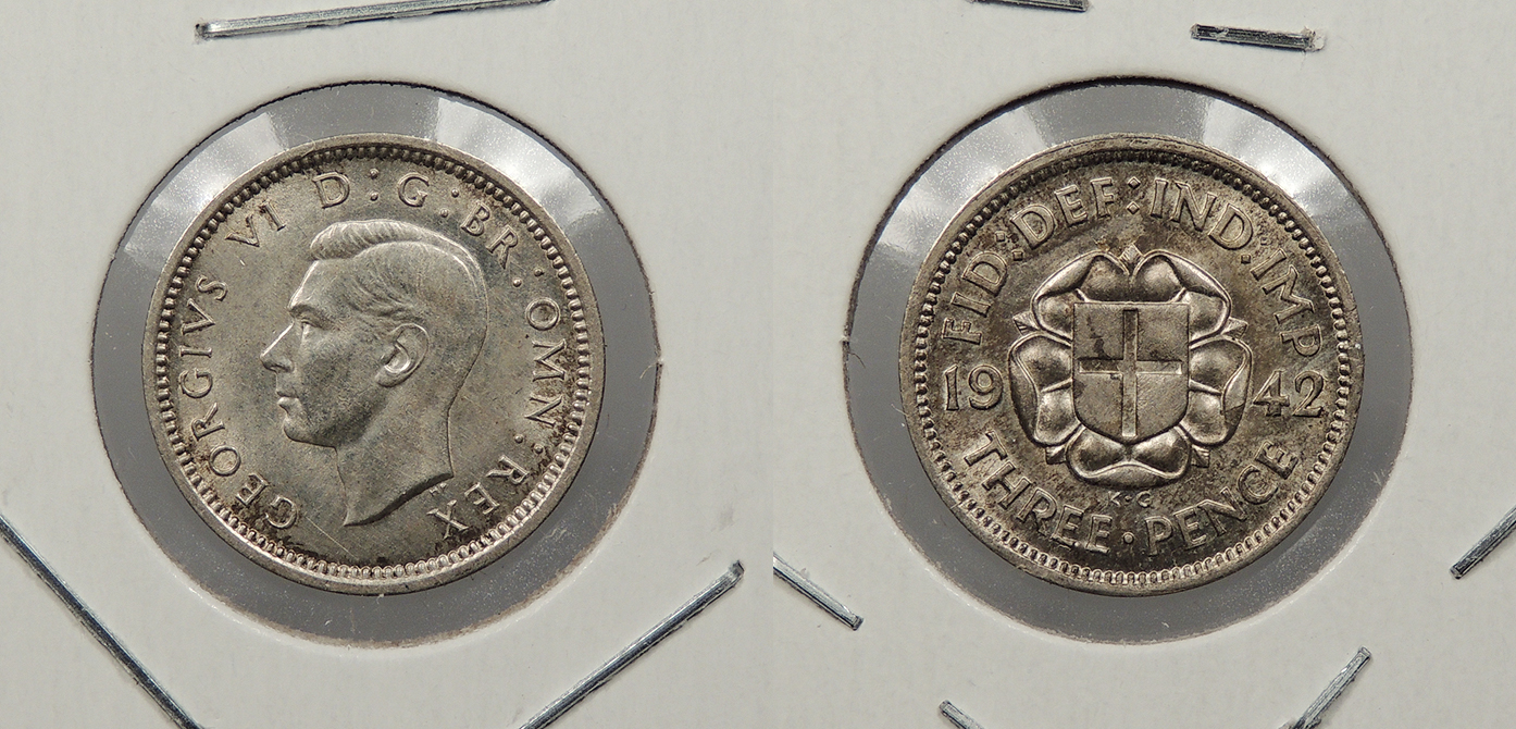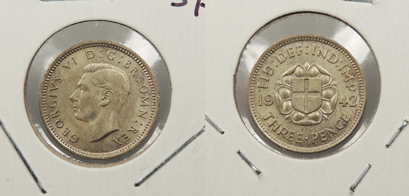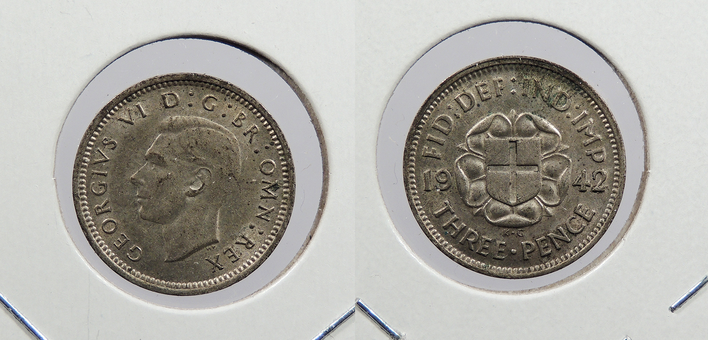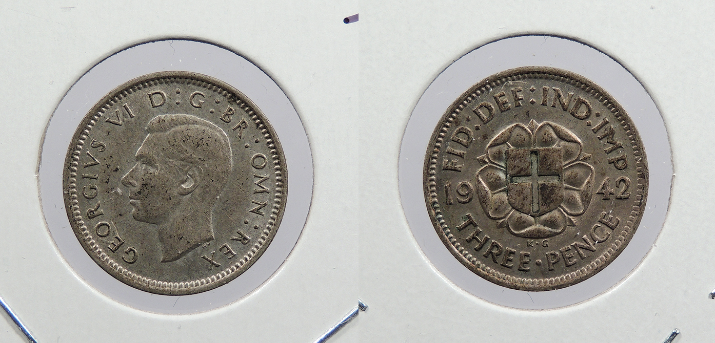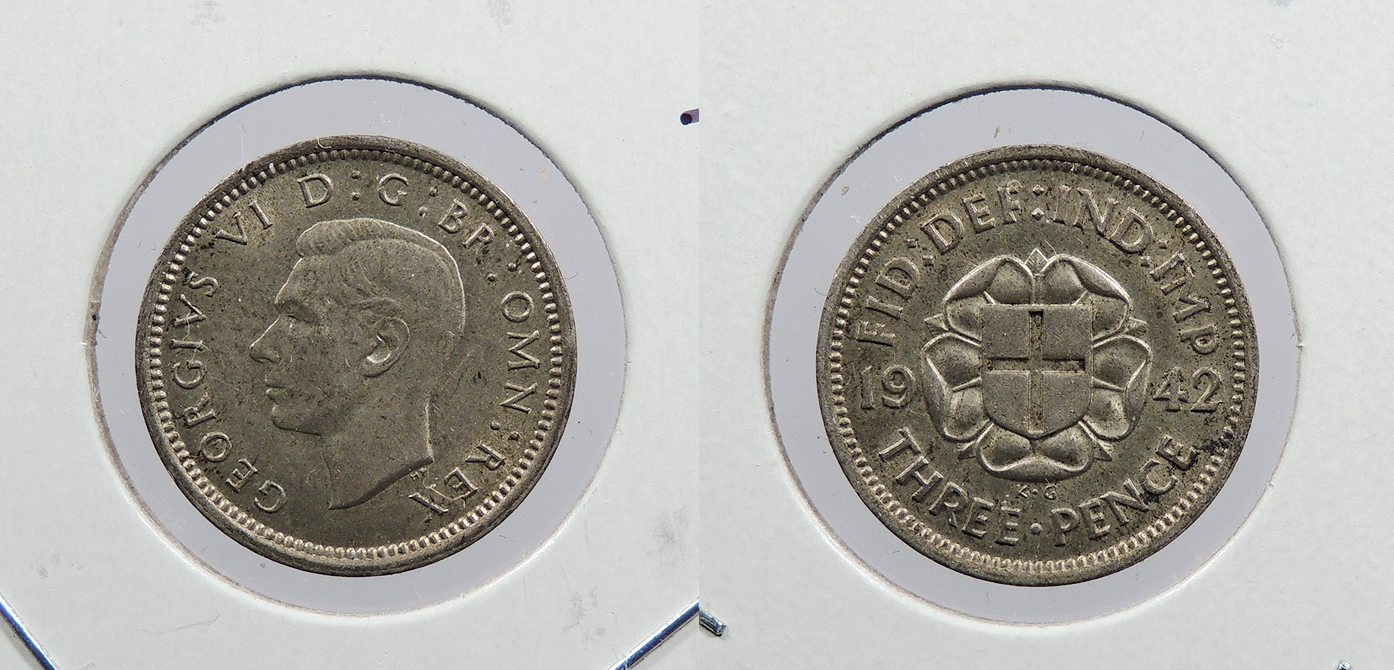 GREAT BRITAIN 1942 George VI Threepence (3 Pence) -- #:WC99035