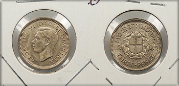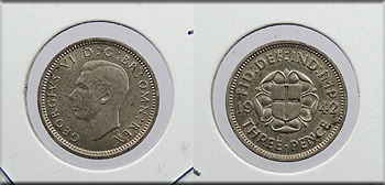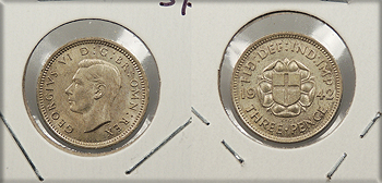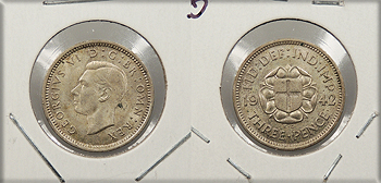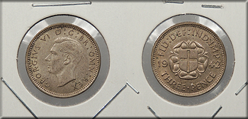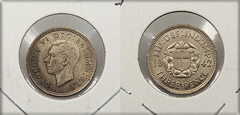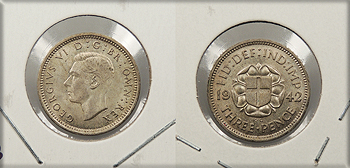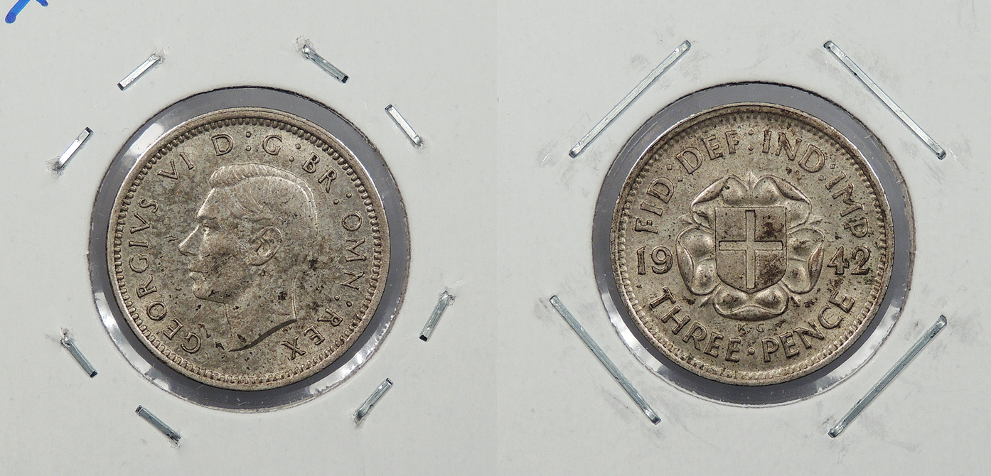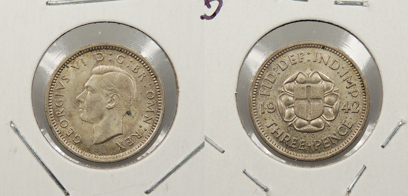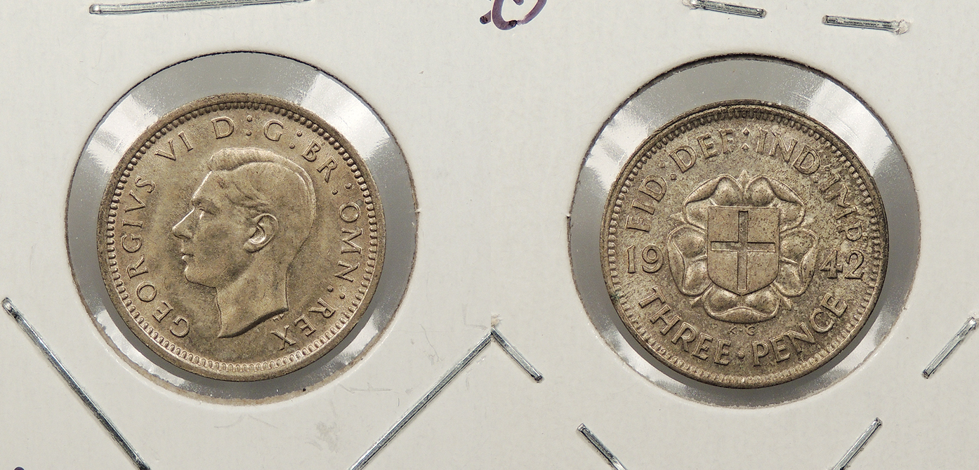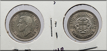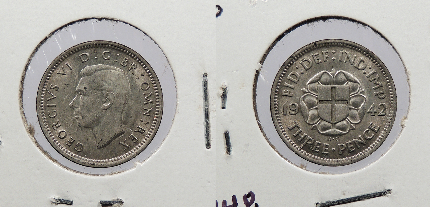 GREAT BRITAIN 1942 George VI Threepence (3 Pence) -- #:WC99035