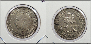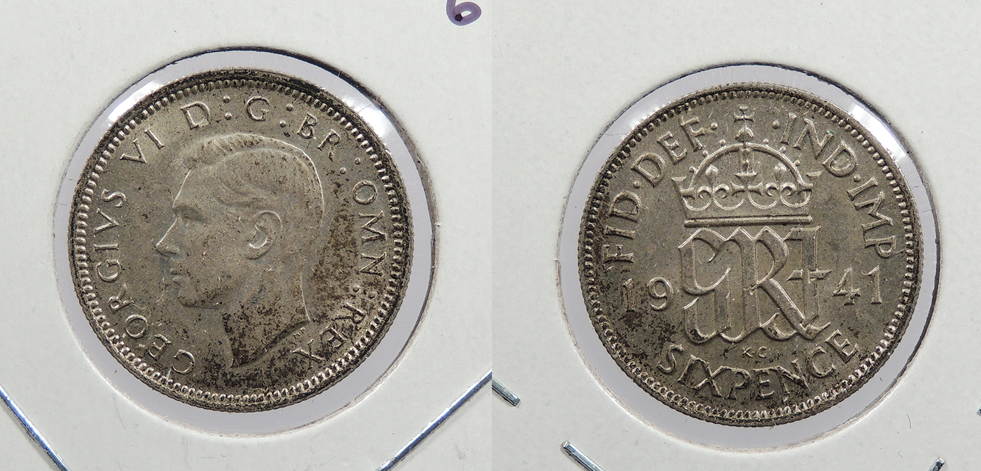 GREAT BRITAIN 1941 George VI Sixpence (6 pence) -- #:WC99019