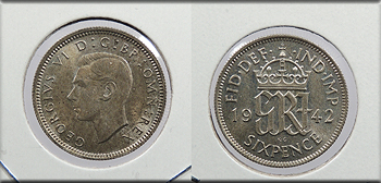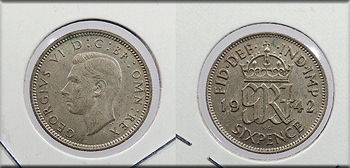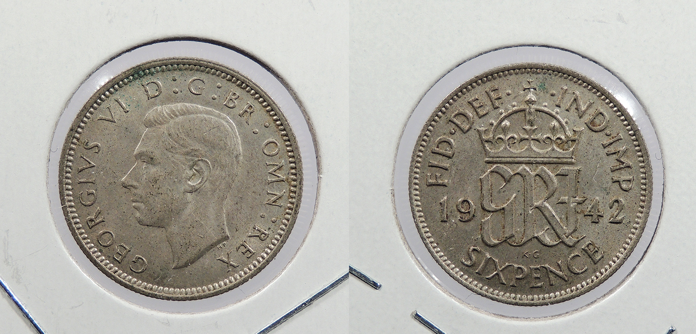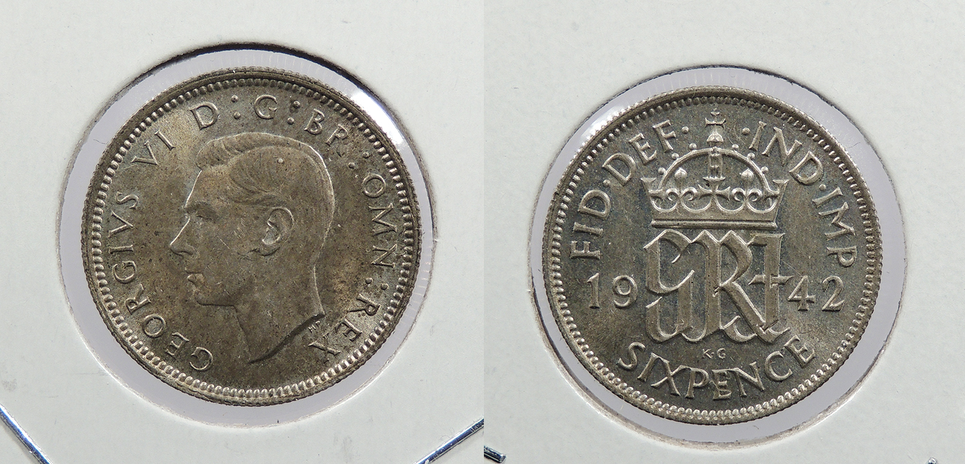 GREAT BRITAIN 1942 George VI Sixpence (6 pence) -- #:WC99021