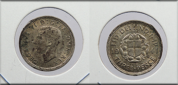 GREAT BRITAIN 1941 George VI Threepence (3 Pence) -- #:WC99032
