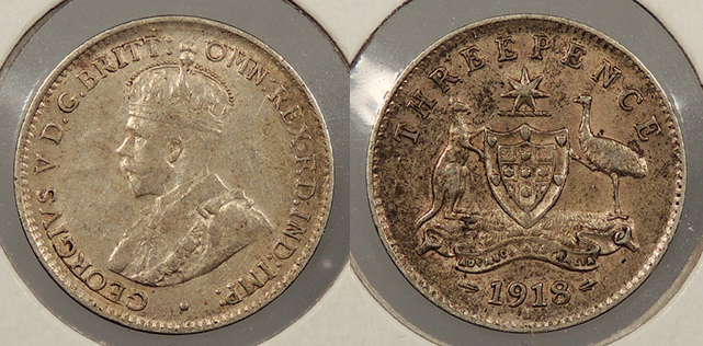 AUSTRALIA 1918-M George V 3 Pence -- #:WC80365