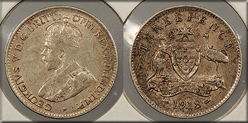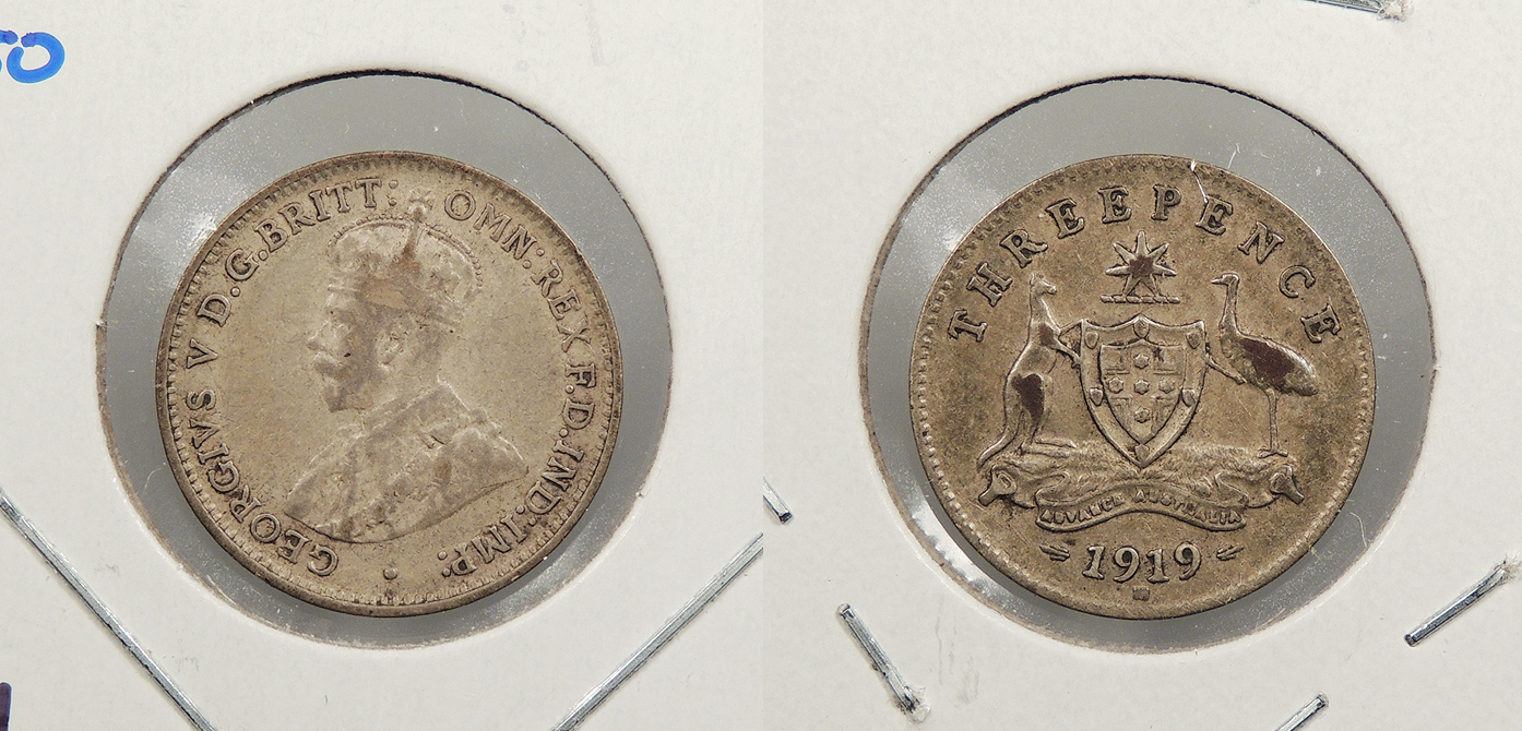 AUSTRALIA 1919-M George V Threepence -- #:WC93640