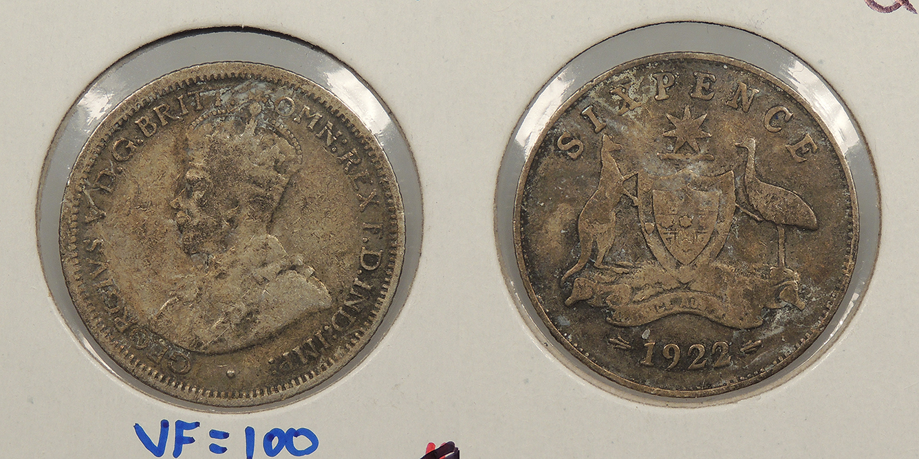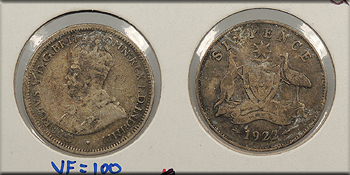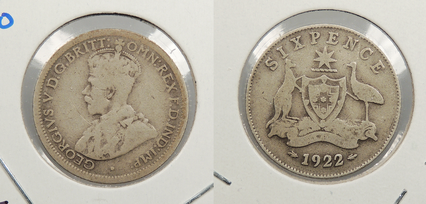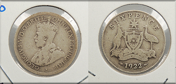 AUSTRALIA 1922 George V Sixpence -- #:WC93630