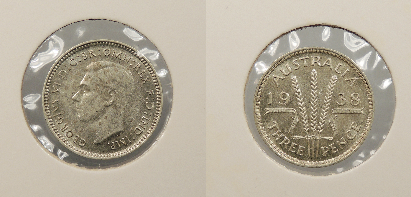 AUSTRALIA 1938 George VI Threepence -- #:WC90195