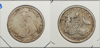 AUSTRALIA 1926 George V Sixpence -- #:WC93626