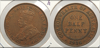 AUSTRALIA 1936 George V Half Penny -- #:WC93643