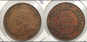 AUSTRALIA 1931 George V Half Penny -- #:WC93645