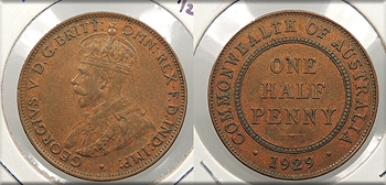 AUSTRALIA 1929 George V Half Penny -- #:WC93646
