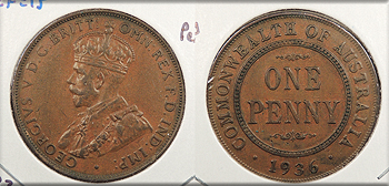 AUSTRALIA 1936 George V Penny -- #:WC93651