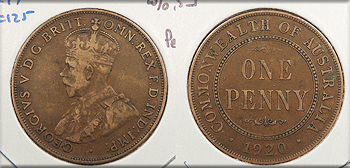 AUSTRALIA 1920w/out dots George V Penny -- #:WC93652