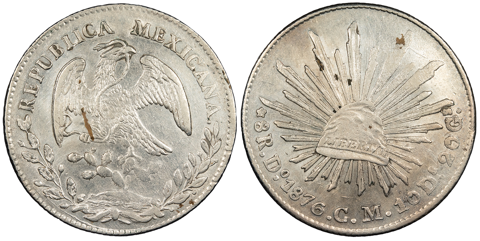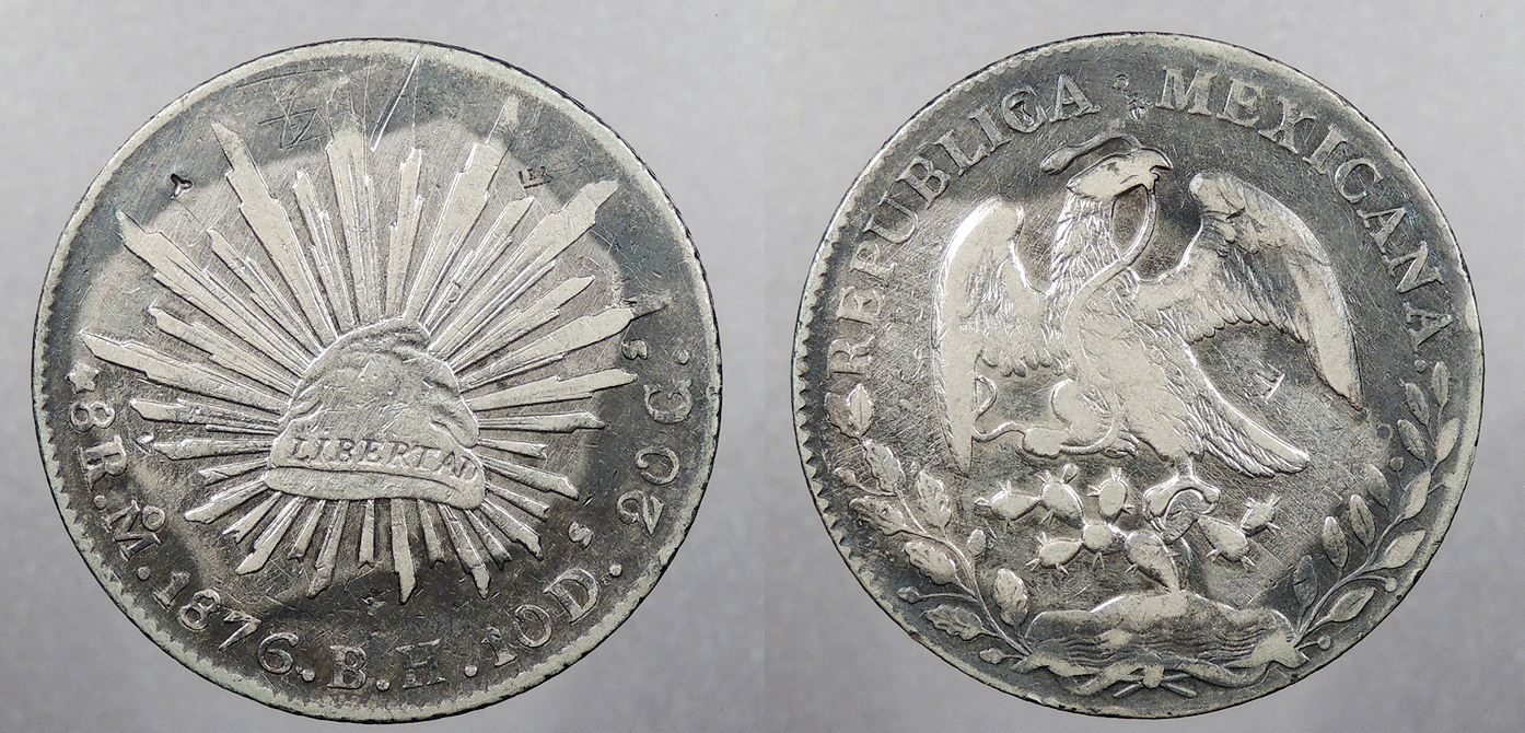MEXICO Republic 1876-Mo BH Cap and rays 8 Reales -- #:WC103384