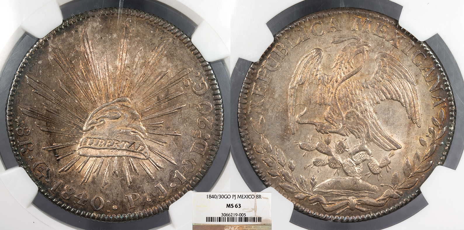 MEXICO Republic 1840/30-Go PJ Cap and Rays; Overdate 8 Reales NGC MS-63 -- #WC103852