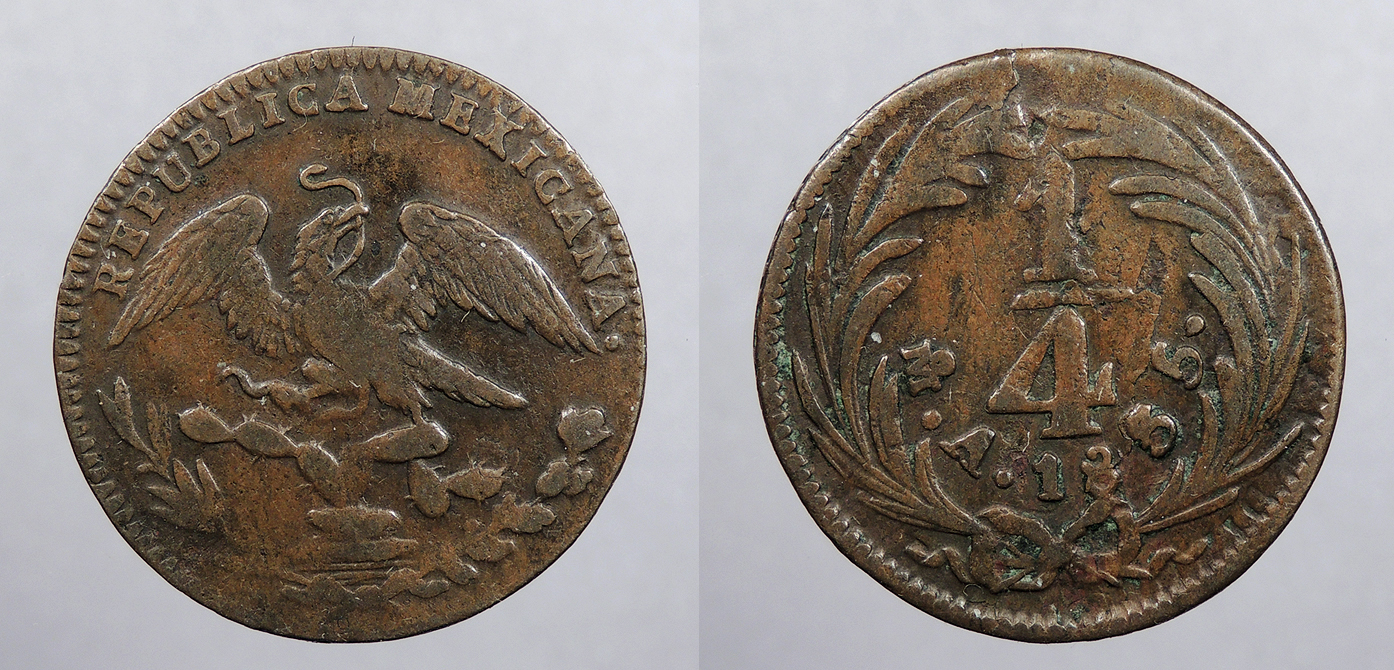 MEXICO Republic 1835-Mo 1/4 Real (Cuarto) -- #:WC104626