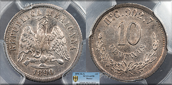 MEXICO Republic 1890-Ho G 10 Centavos PCGS AU-58 -- #WC105616