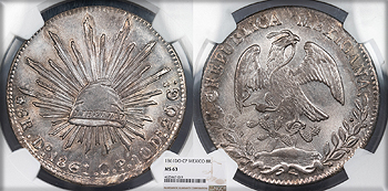 MEXICO Republic 1861-Do CP 8 Reales NGC MS-63 -- #WC91727