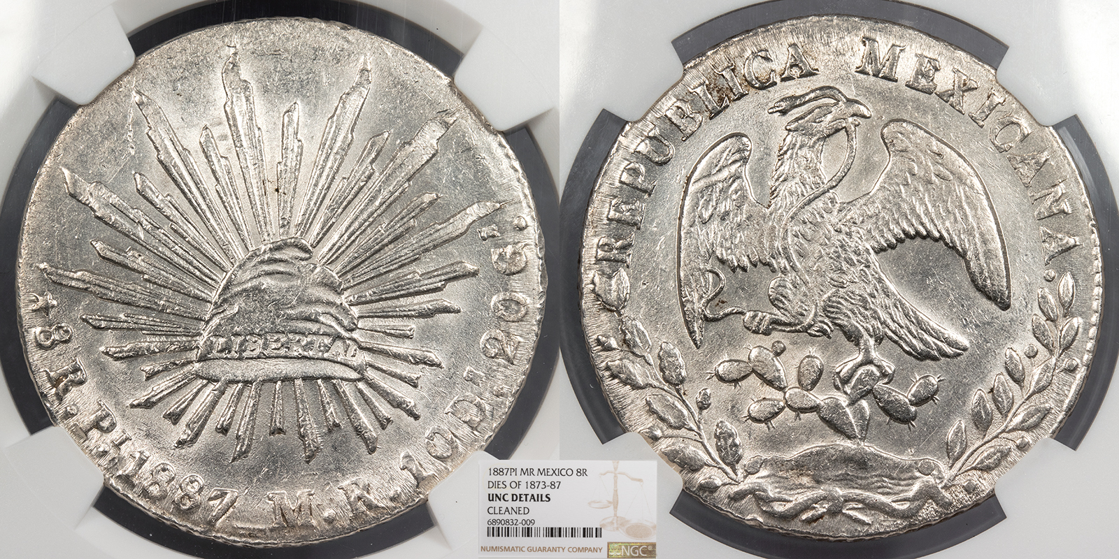 MEXICO Republic 1887-Pi MR 8 Reales NGC UNC -- #WC98898