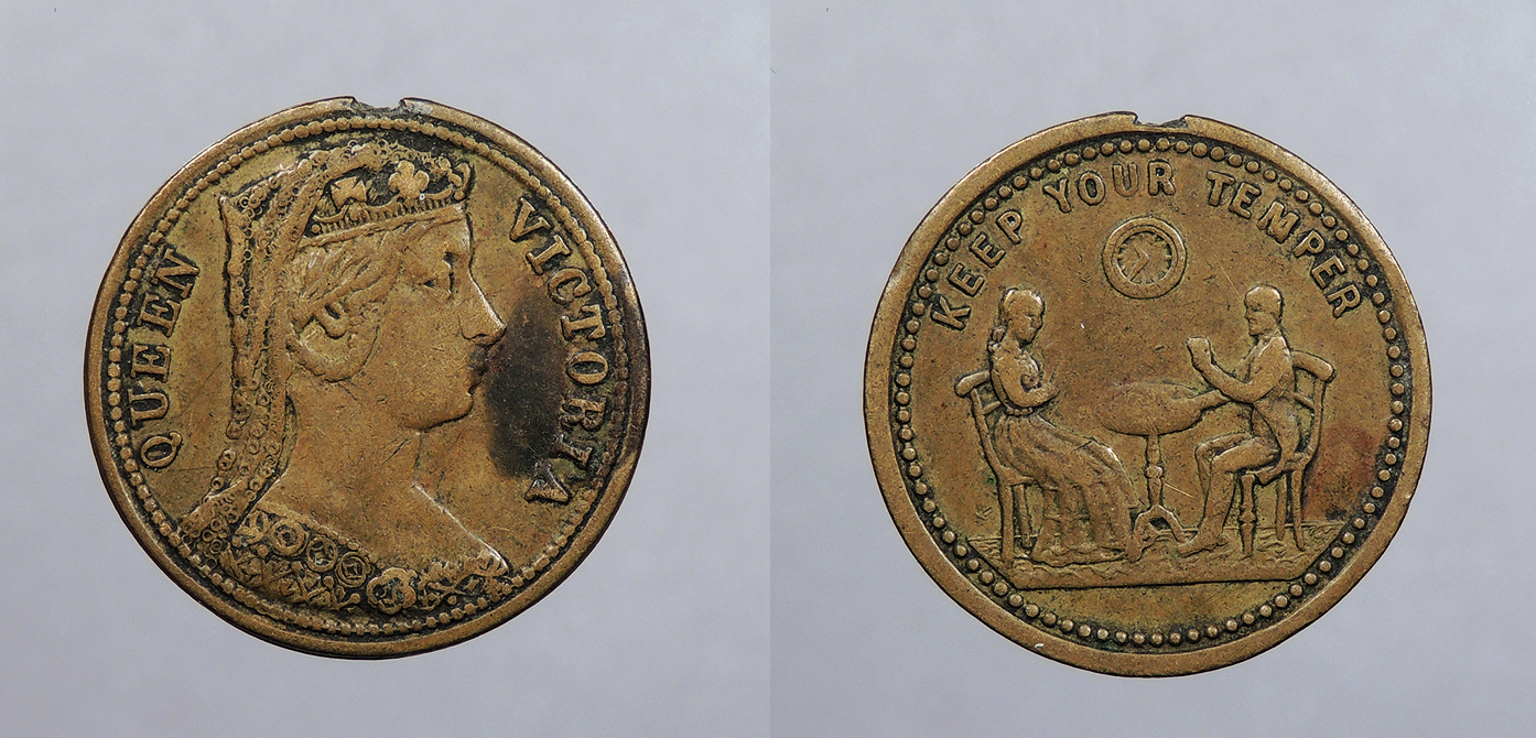 GREAT BRITAIN ND 'KEEP YOUR TEMPER'; Victoria 19mm Jeton -- #:WC106200