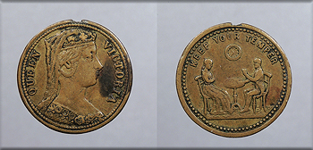 Brass 19mm Jeton 'KEEP YOUR TEMPER'; Victoria