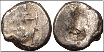 AR Siglos 17mm. 5.60g. Sardes Mint King in kneeling-running stance r., holding dagger and bow.