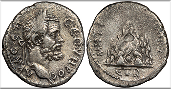 AR Drachm 19mm. 2.80g. RY2 (193-194 A.D.) Laureate head, r. AV L CEP CEOVHROC Mt. Argaeus surmounted by star; In ex.: ETR (date) MHTRO KAICARI SNG Copenhagen 256; Sydenham 388 VF. Toned with much remaining lustre. Scarce. Light porosity. Partial weak reverse strike.