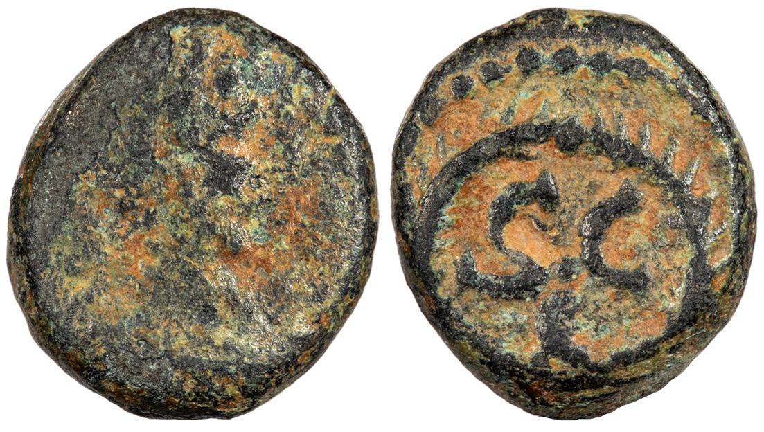 AE Chalkous (Half-quadrans) 10mm. 1.06g. Antioch Mint Laureate, draped and cuirassed bust, r.