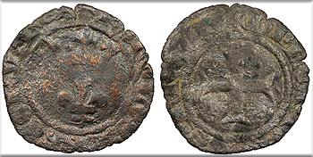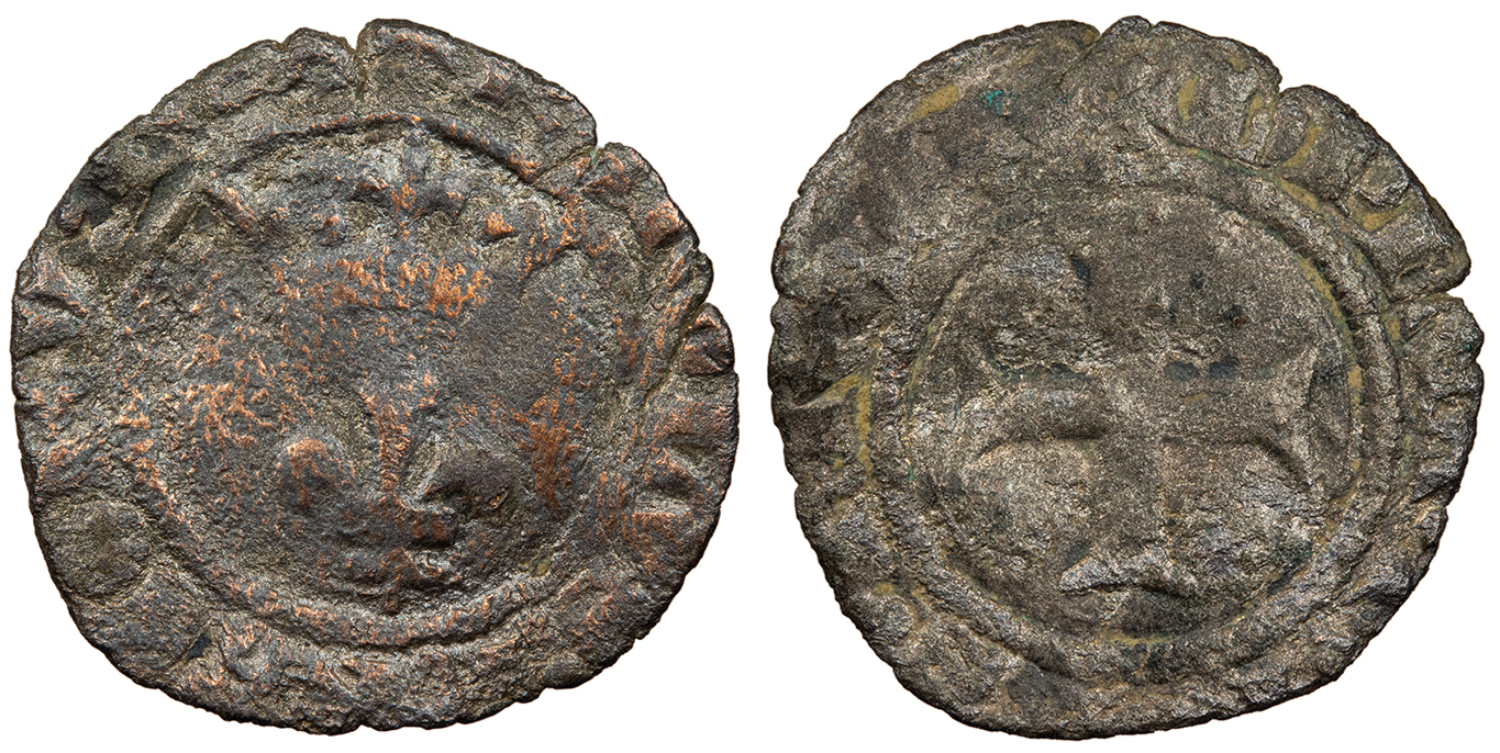 FRANCE Charles VI 1380-1422 Double Tournois Fine -- #ME100525