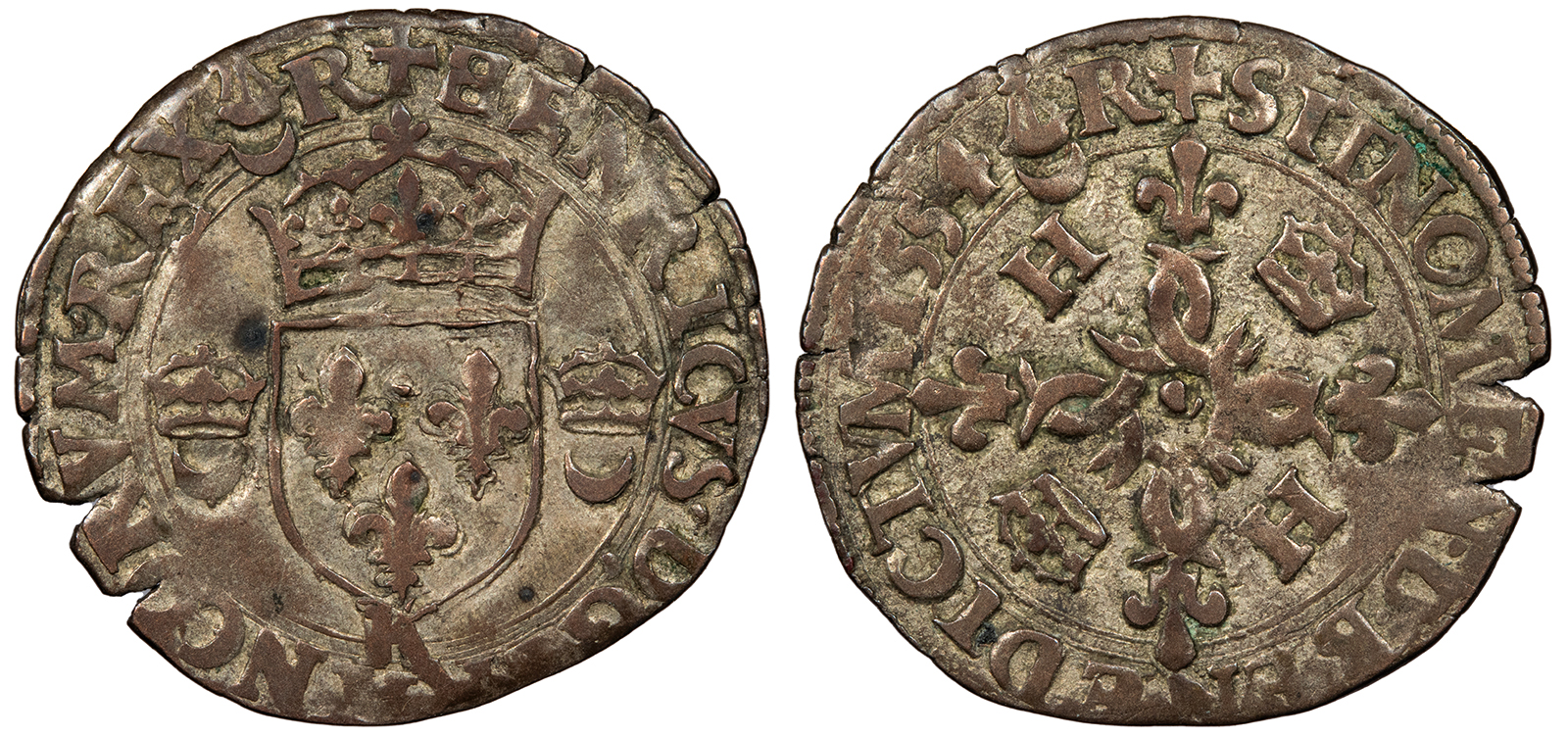 FRANCE Royal Issues Henri II 1547-1559 1554-K Douzain VF -- #ME106544
