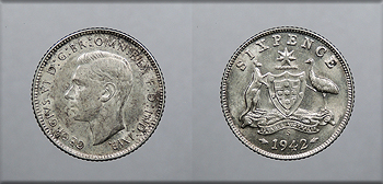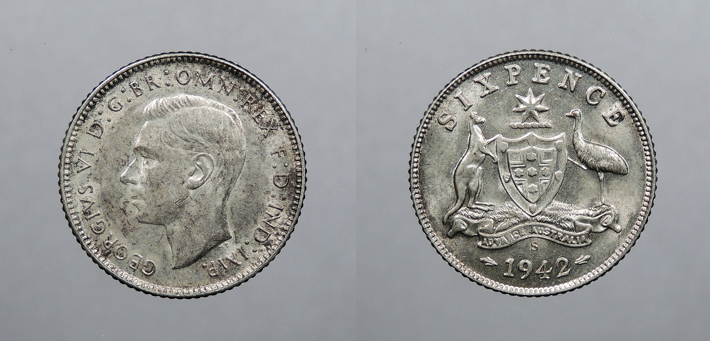 AUSTRALIA 1942-S San Fran. mint Sixpence (6 Pence) -- #:WC104425
