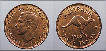 AUSTRALIA 1939 George VI; Key Date Half Penny -- #:WC104557