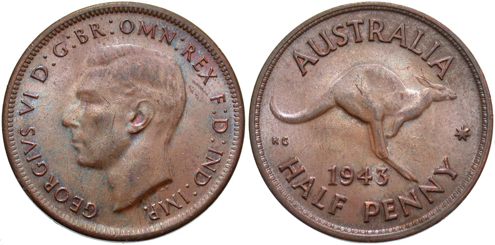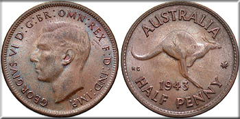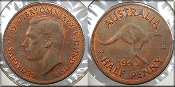 AUSTRALIA 1943(m) George VI Half Penny -- #:WC77469