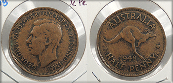 AUSTRALIA 1948 (p) George VI Halfpenny -- #:WC95588